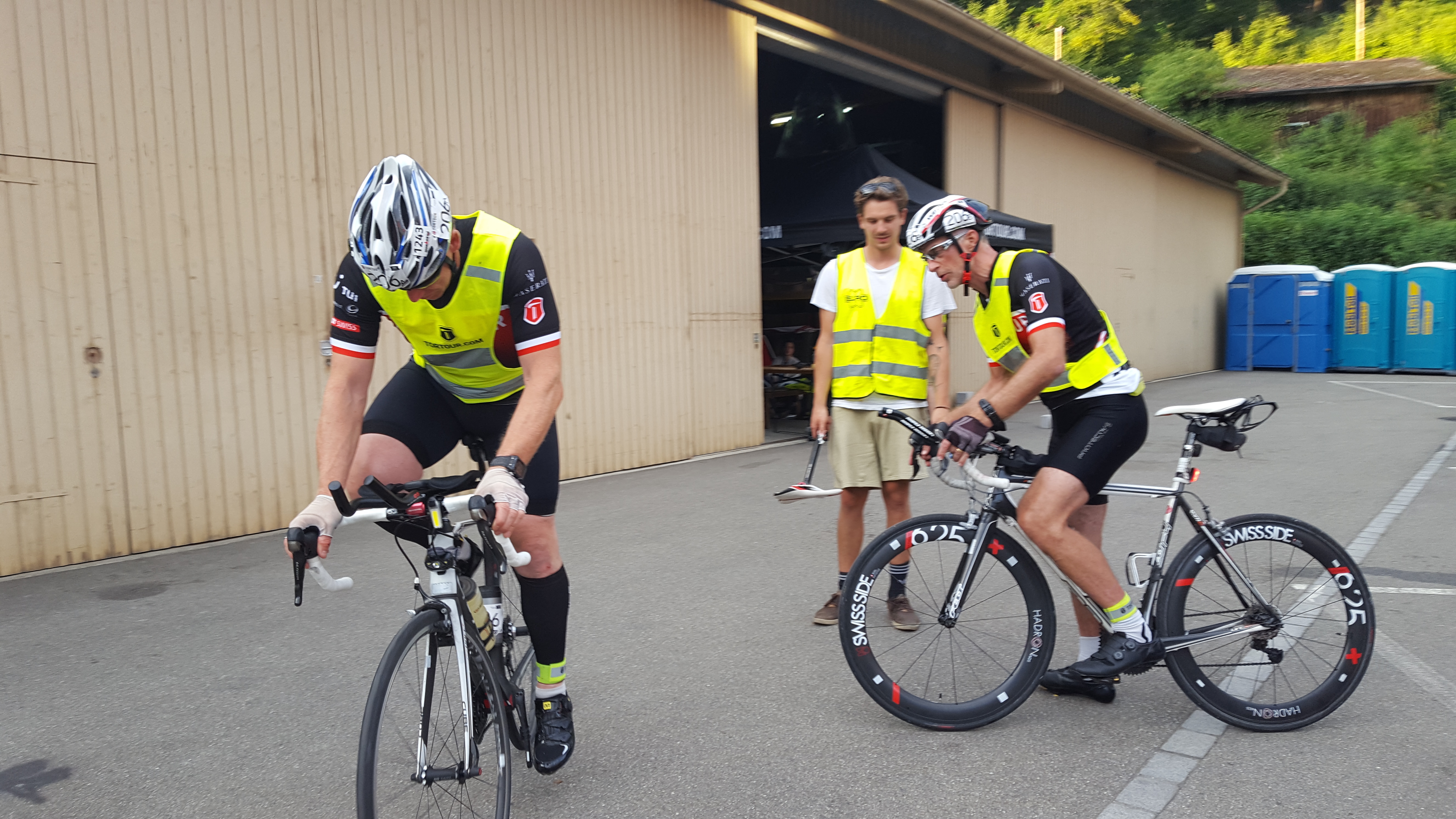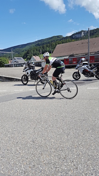 Es ist inzwischen 17:35h als Immanuel zur Timestation in Laufenburg einfährt, per Handshake Matthias alles Gute wünscht und ihn auf die letzte (Solo)-Etappe nach Glattfelden schickt.